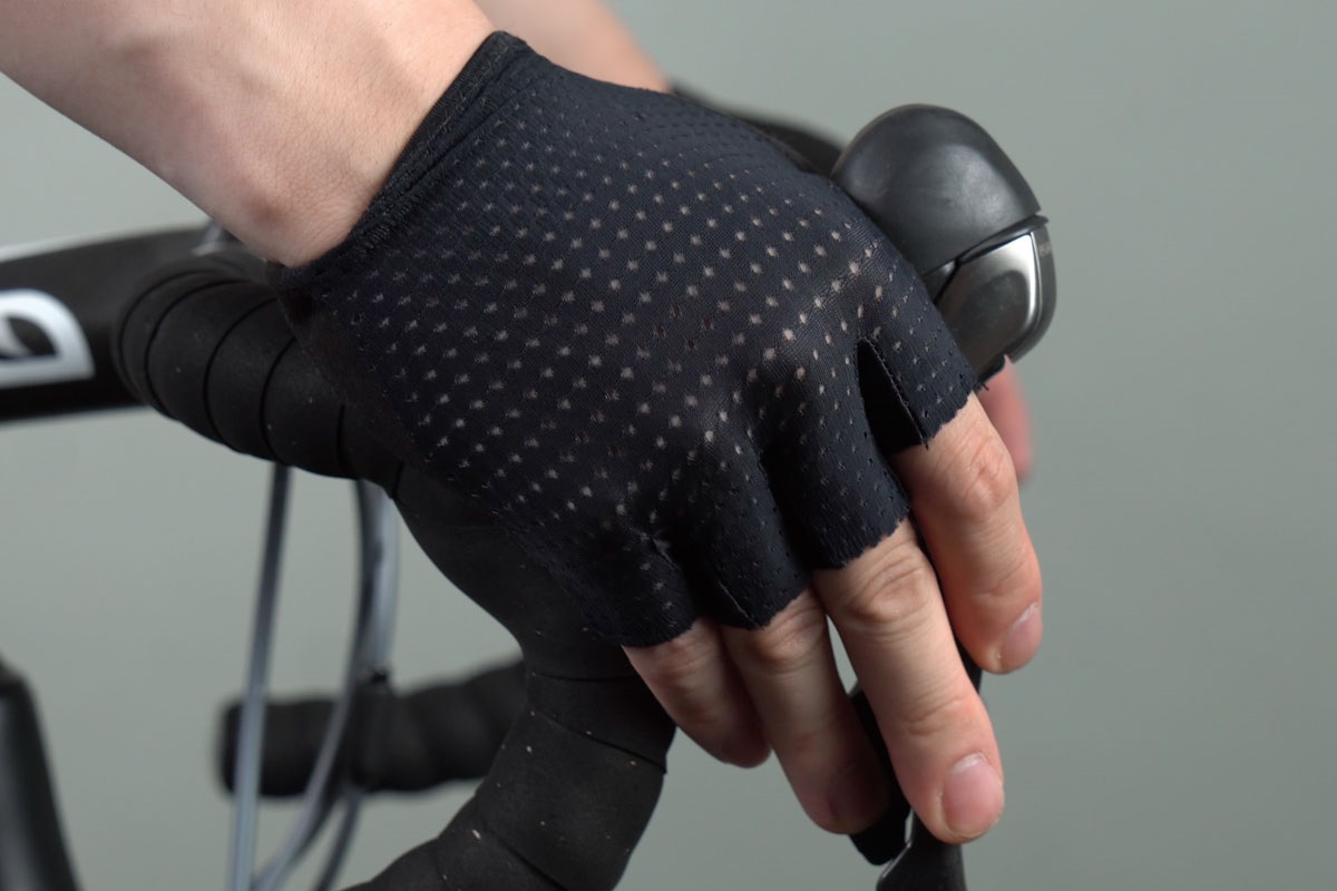 適度なパッドを搭載し解剖学的構造を模倣した5つの異なるテキスタイルと10枚のパネルから作られるレース向けサマーグローブ