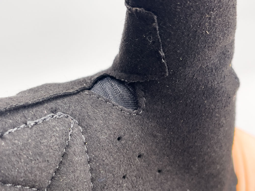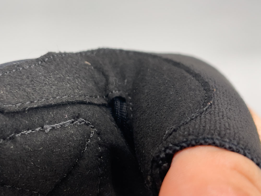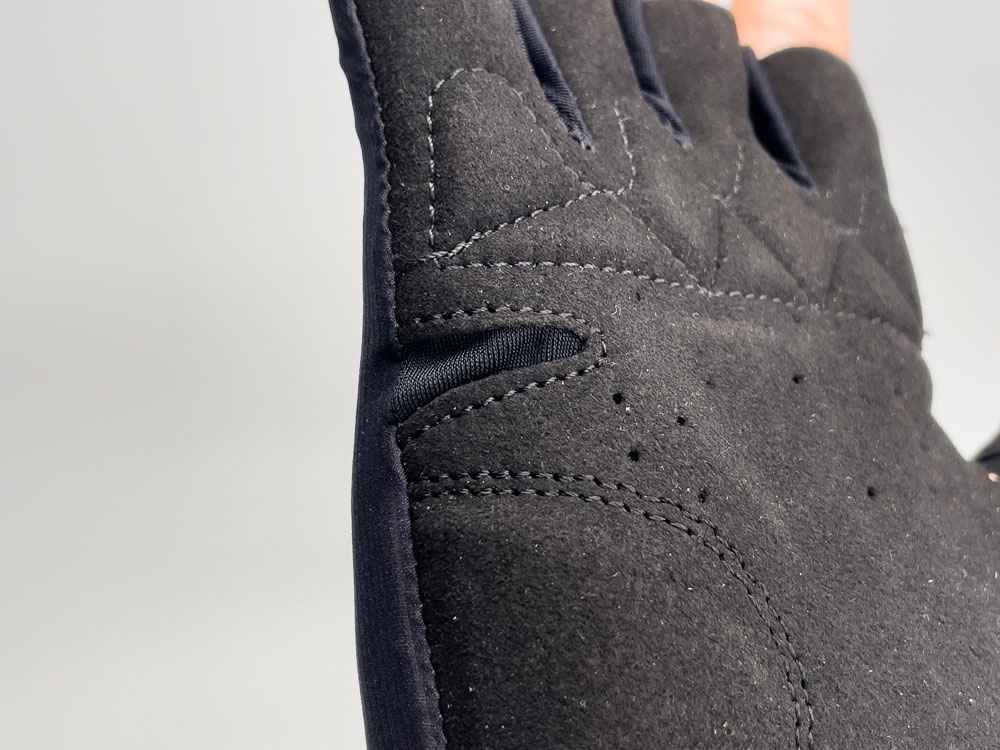 親指と人差し指の間に固めの生地を採用し、ハンドルを握っている時の擦れを防ぎます。