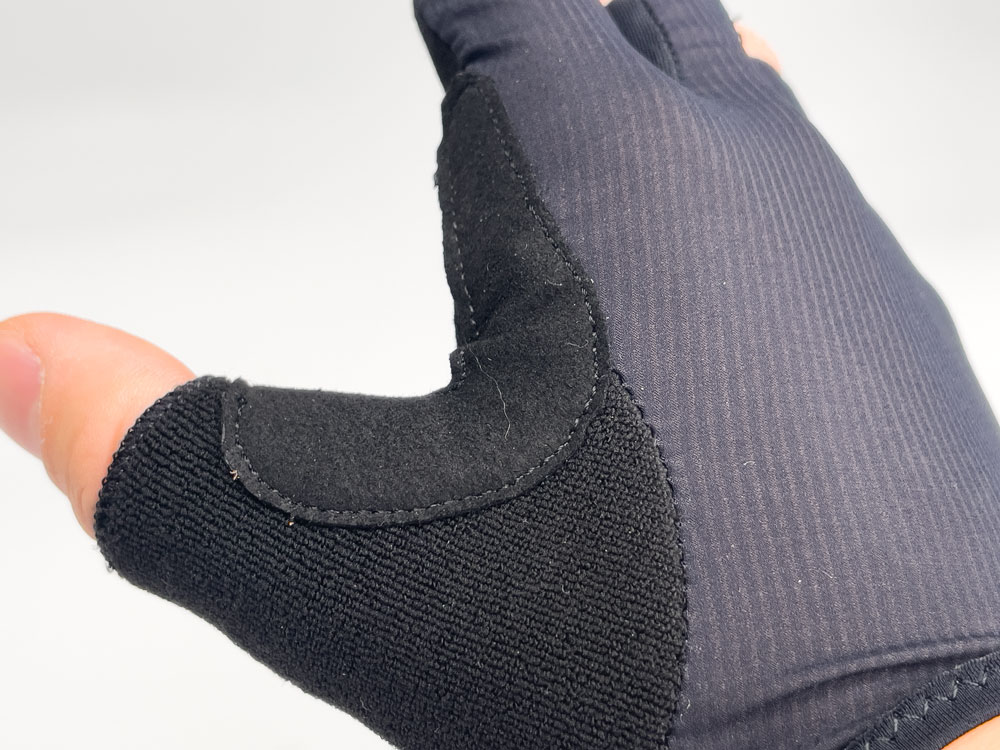 左右の親指にはタオル素材を使用し流れる汗を拭き取れます。