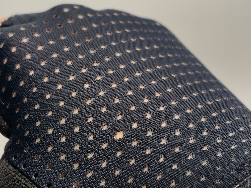 手の平に使用されるメッシュ素材が安定したグリップ感を与え汗をかいた手でも安定した操作が可能です。