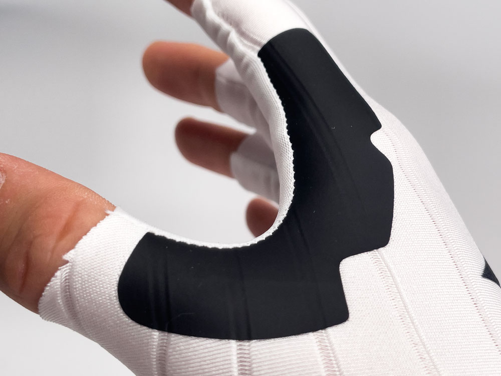 0.5mm厚の手の平には指の付け根と小指下にパッドを配置。