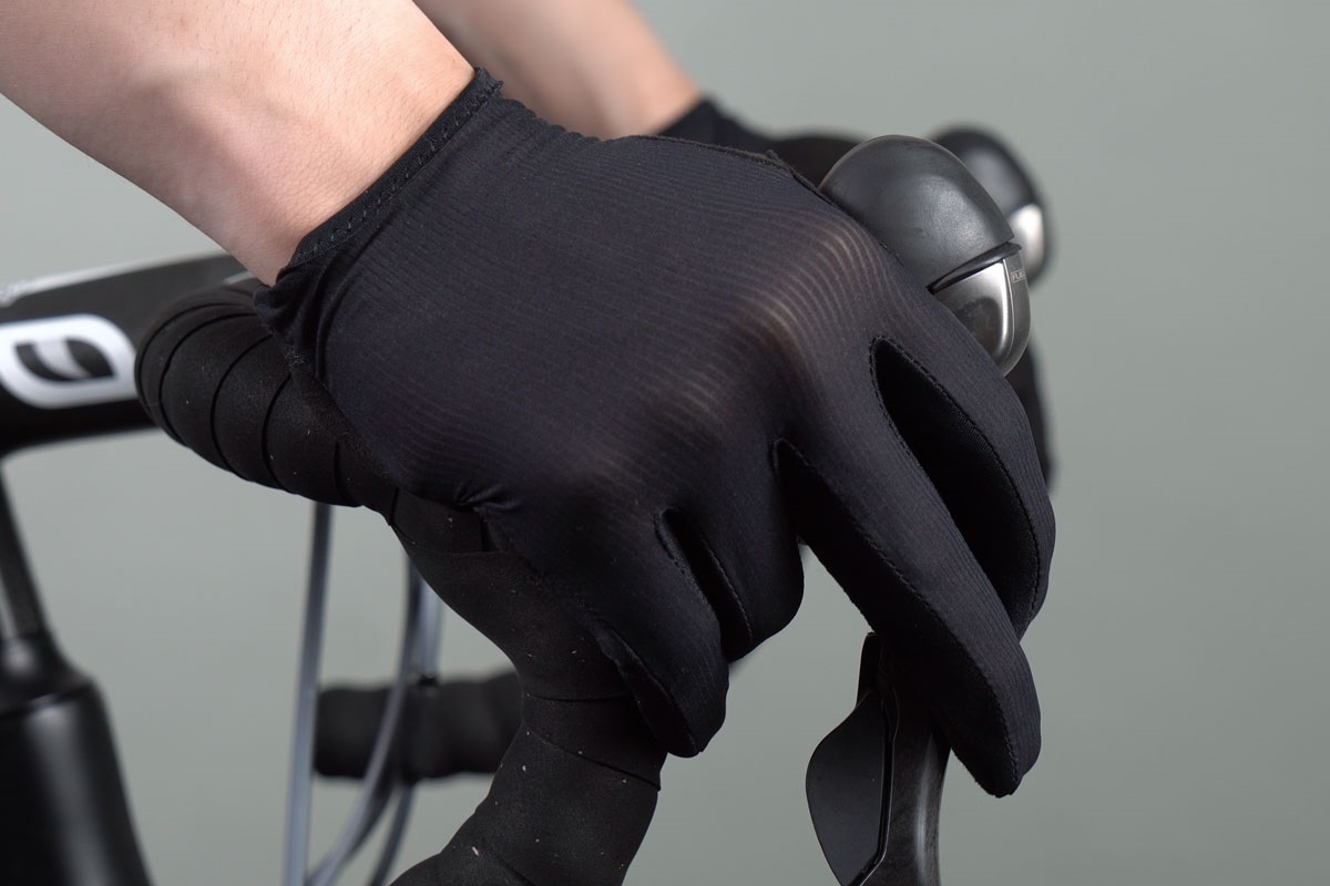 身体の中で一番初めに風が当たる手の空気抵抗を減らすためにデザインされたグローブ