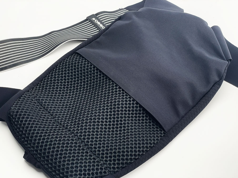 ビブストラップに比べスパイダーバッグのストラップは伸びにくくストラップの上下には伸縮性の高い素材を使用。