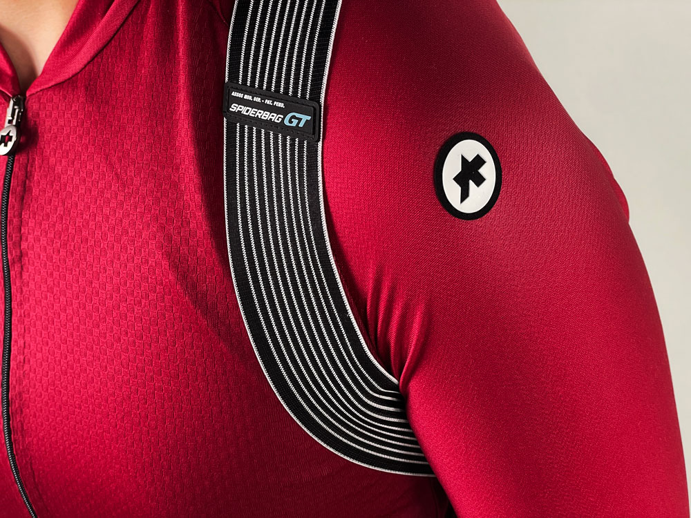 一見ASSOSのビブストラップと同じように見えますが、このストラップはスパイダーバッグ専用のストラップ。ビブストラップと同じようにねじれを防止するスタビライザーを搭載するなど今まで技術をうまく活用しています。