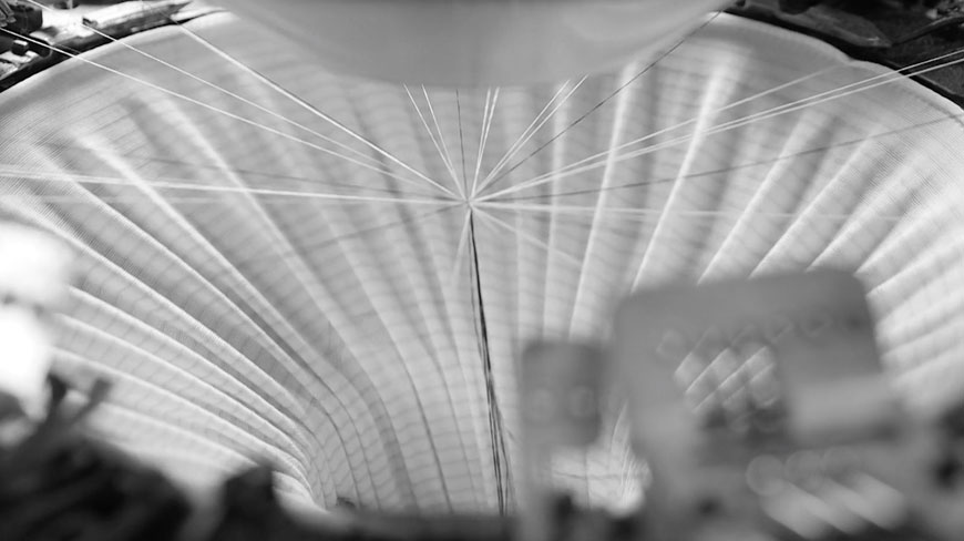 新たに採用されたカーボンファイバーを混合した糸。