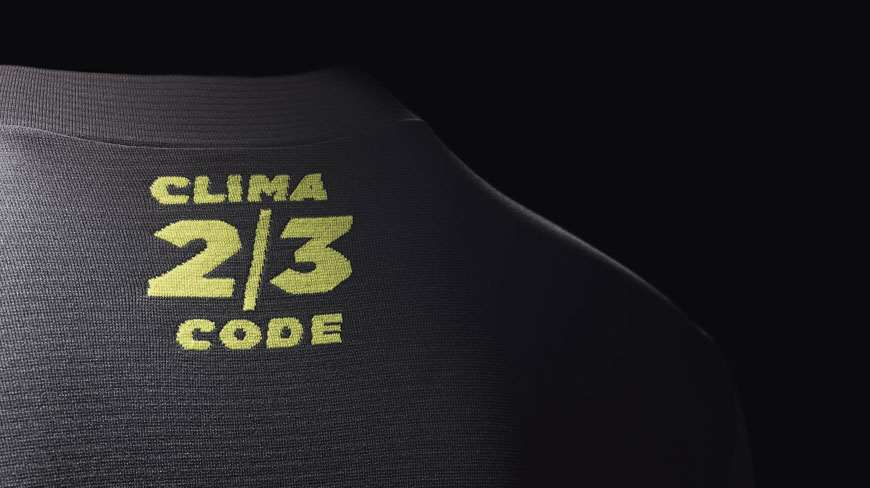 ネック部分には適応温度帯レンジを表す「CLIMA CODE」が同素材であしらわれています。