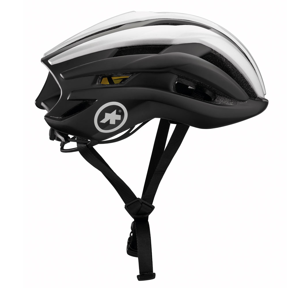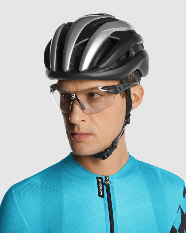 カラーリングは伝統のブラックXクロームのASSOSカラー。右側にはAロゴがあしらわれ、ASSOSウェアとのマッチングも完璧。