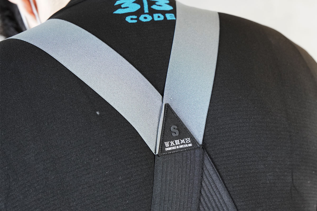 ビブサスペンダーは、EQUIPEシリーズやMILLE GTOなどのビブショーツに採用されている「X-frame」にアップデート。腰部分の生地のたるみを抑制し、インサートパッドやその周囲を安定させます。