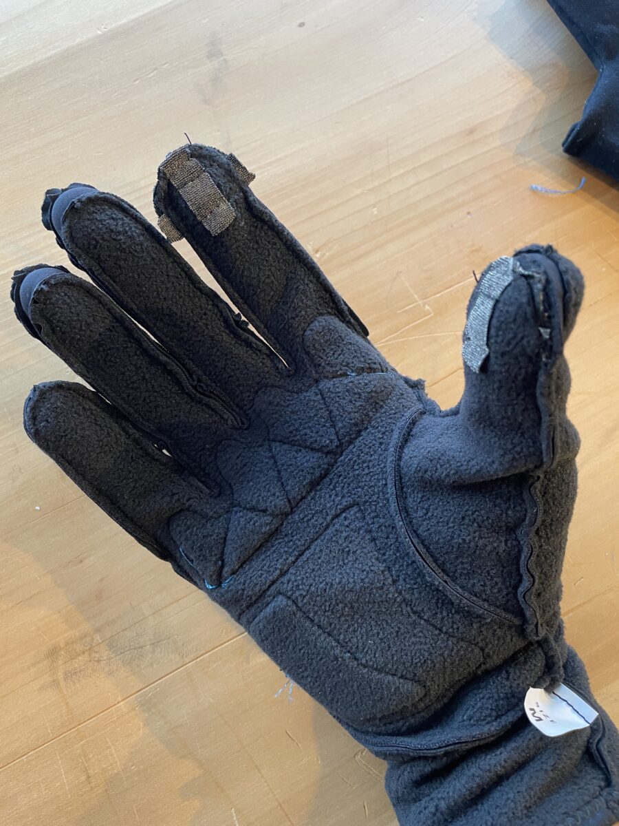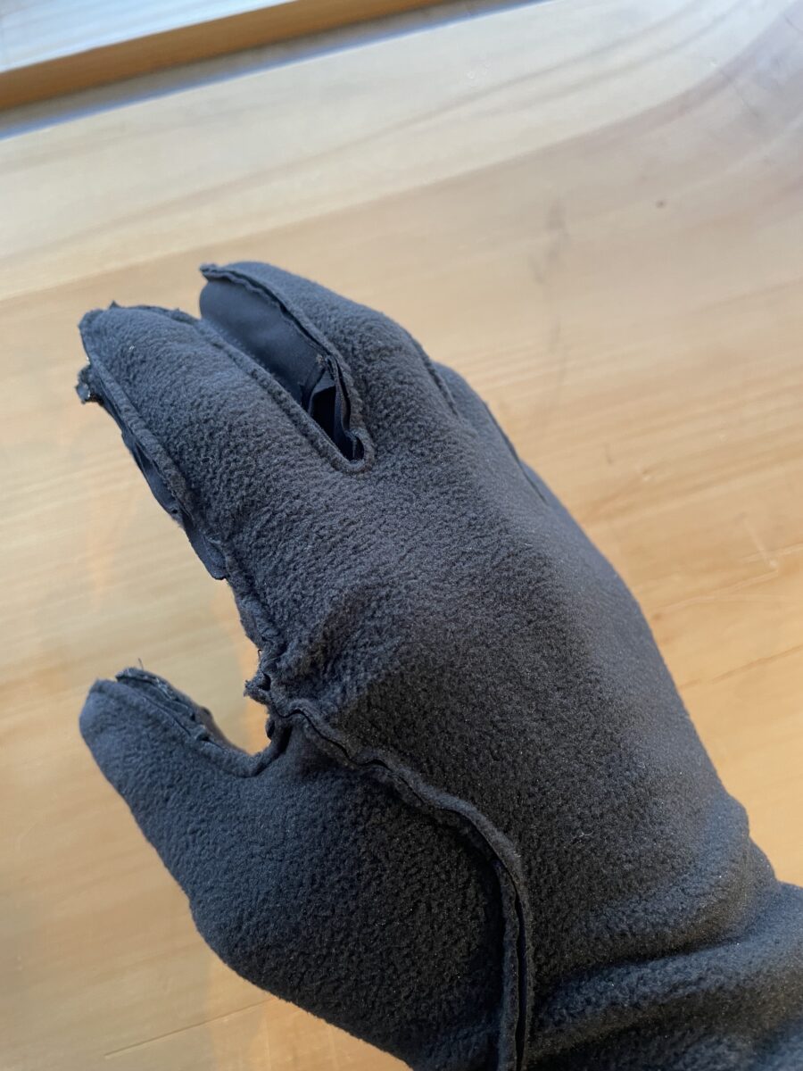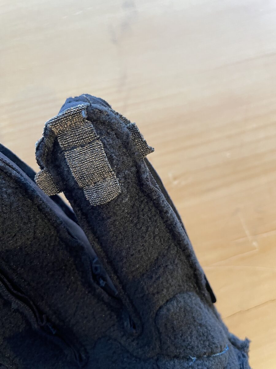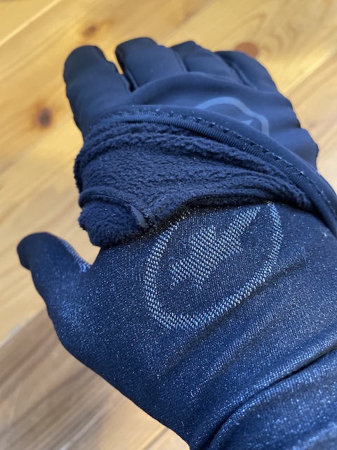 手の甲はフリース素材+防風性と透湿性をテキスタイルを使用