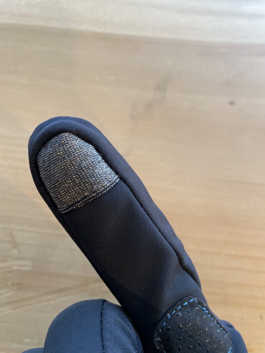 親指と人差し指の指先はスマホ操作ができる生地を使用している