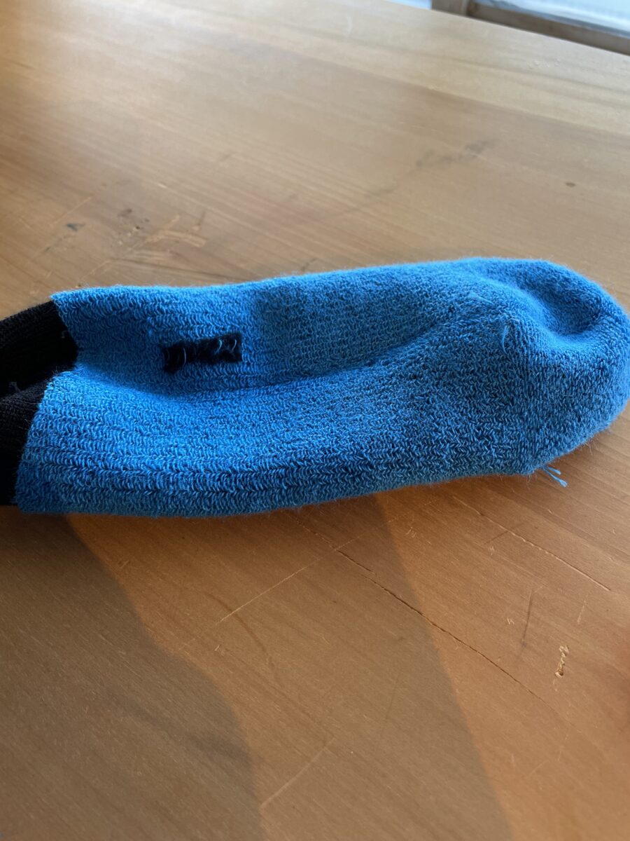 指先(緻密で丈夫で厚く)・甲(伸縮しサポートされる様に)・かかと(やや薄く動きやすく)