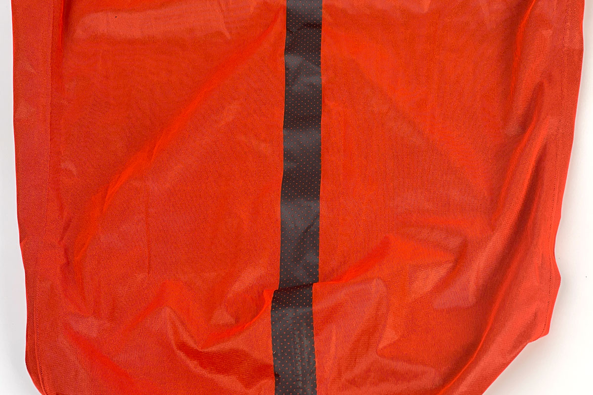 レインシェルながら、横方向にしっかりと伸縮性があり脱着しやすく、ライディング時にも体にしっかりとフィット。バタつかずエアロ効果を高めます。