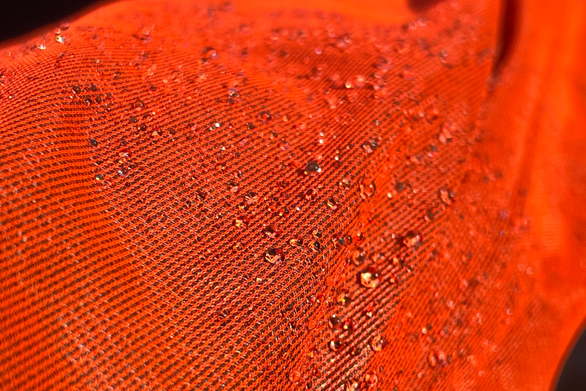 耐水圧10,000mm、透湿性27,100g/㎡/24hと透湿性を高め、レインウェアを着用したときのあの不快な蒸れを無くします。