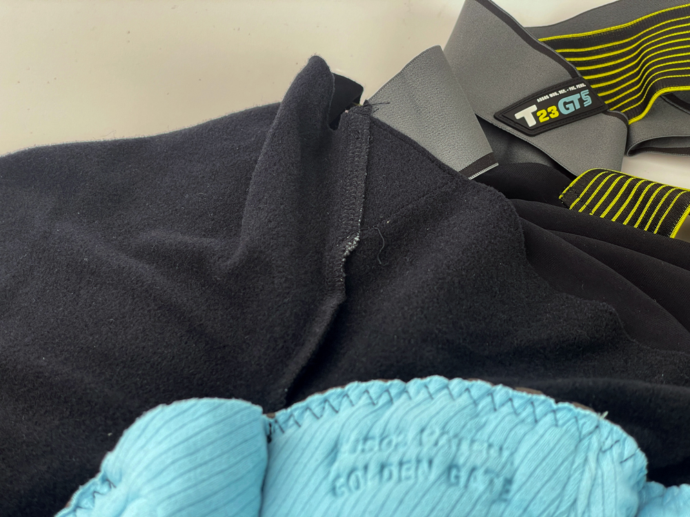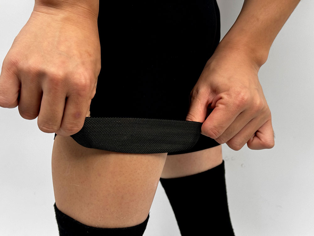 その為、ズレを防止する為ビブショーツと同じように、広めのレックグリップを使用しずり上がりにくくし、なおかつ引っかかりを感じがないように工夫しています。