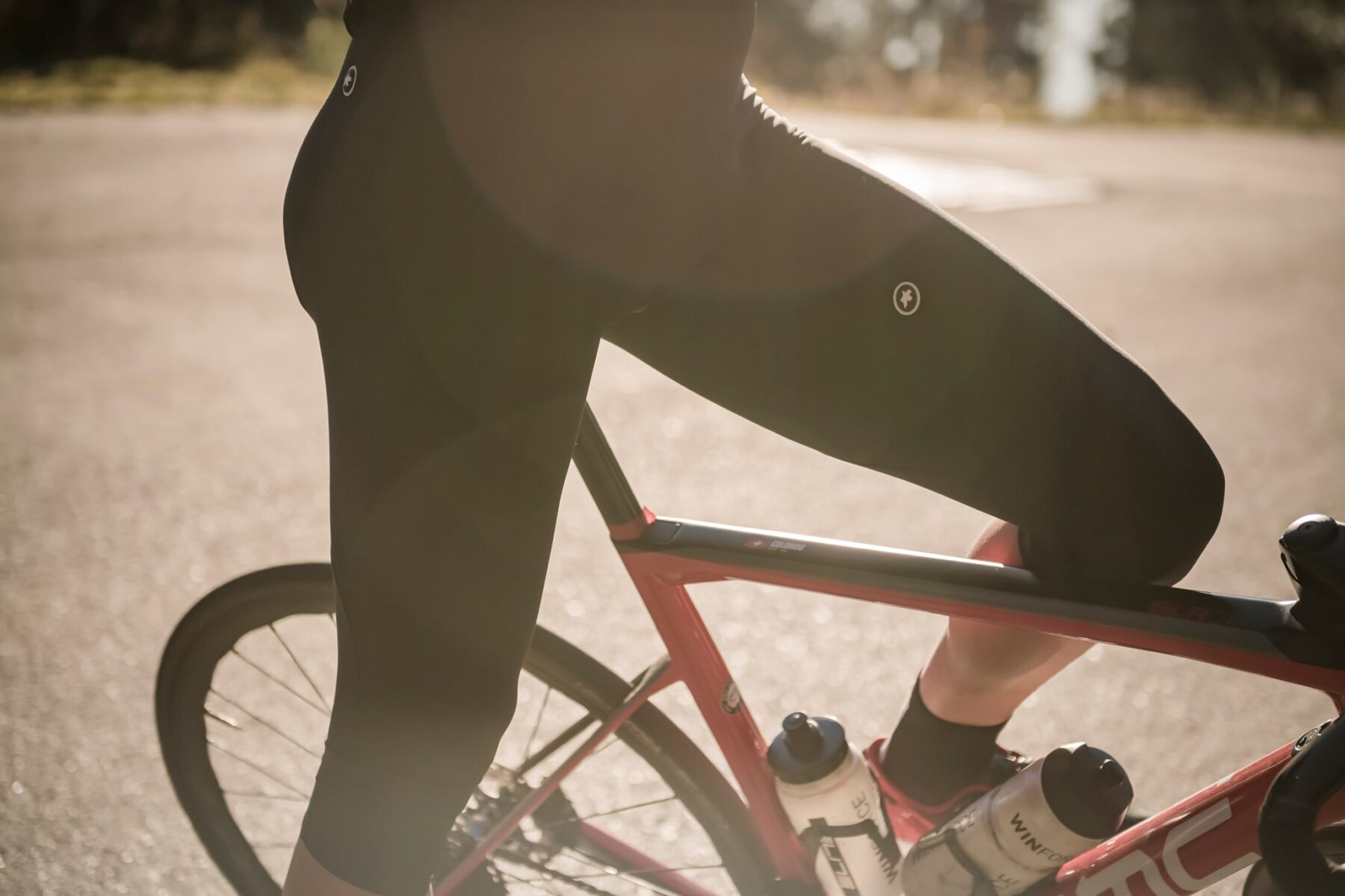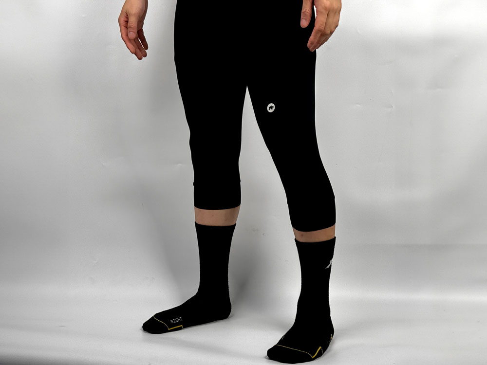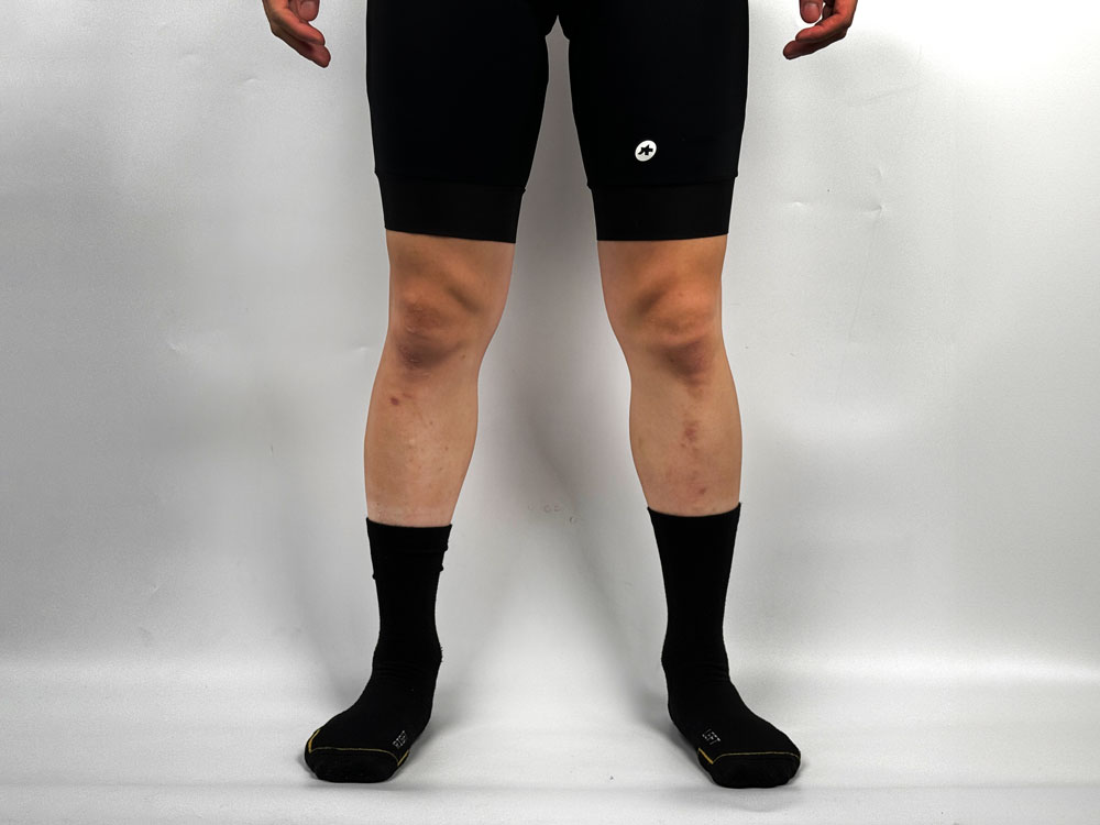 くるぶし上や脛あたりまでのソックスを履くことの多いサイクリングウェアでは膝下あたりから脛の一部が肌の見える状態になります。