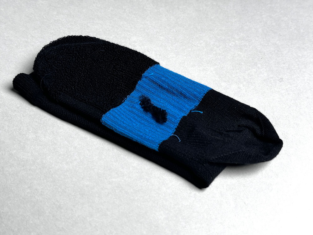歩く際につま先部分が地面と擦れ、破れやすいため強度の高い生地を使用しています。