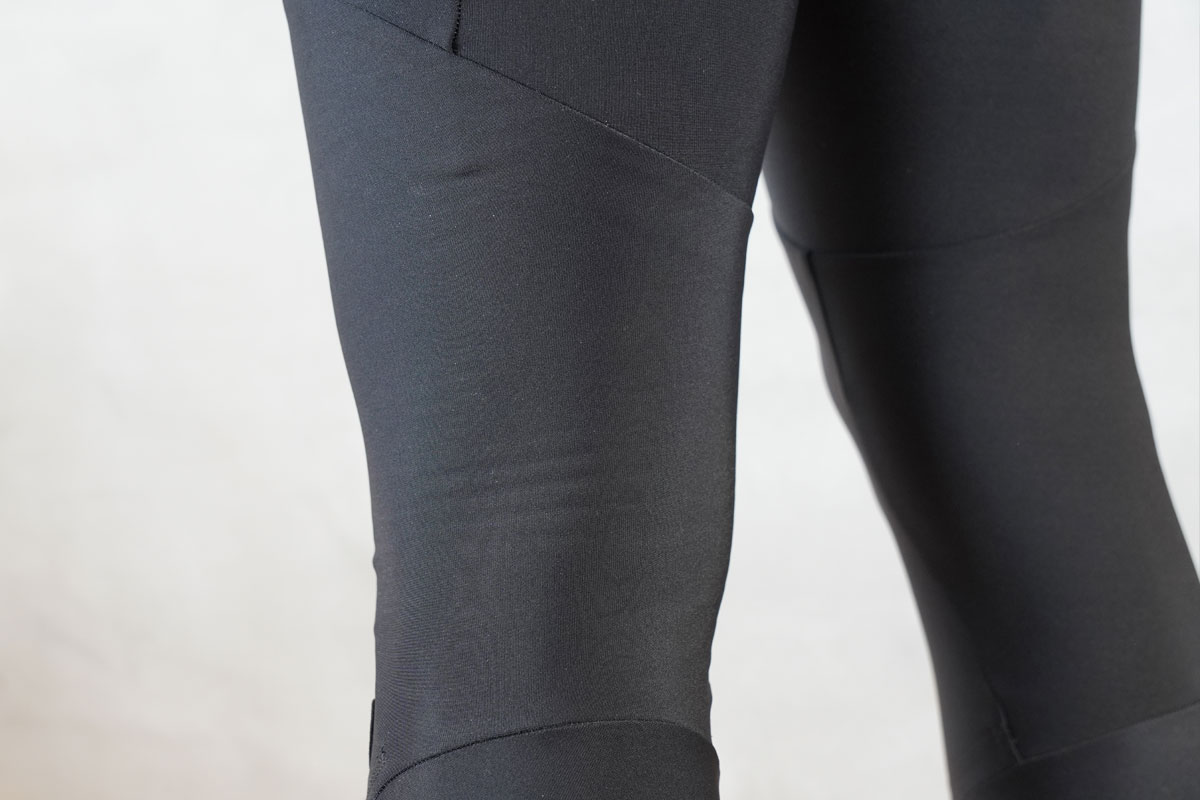 モモから膝に向けてはペダリングに生地がごわつかないように、二重構造にしています。