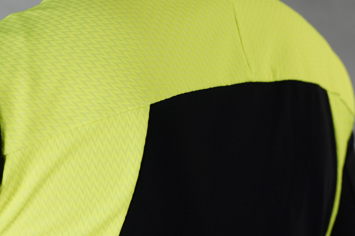 風を多く受ける前面と腕周りは防風素材「AIRBLOCK.888」を使用。