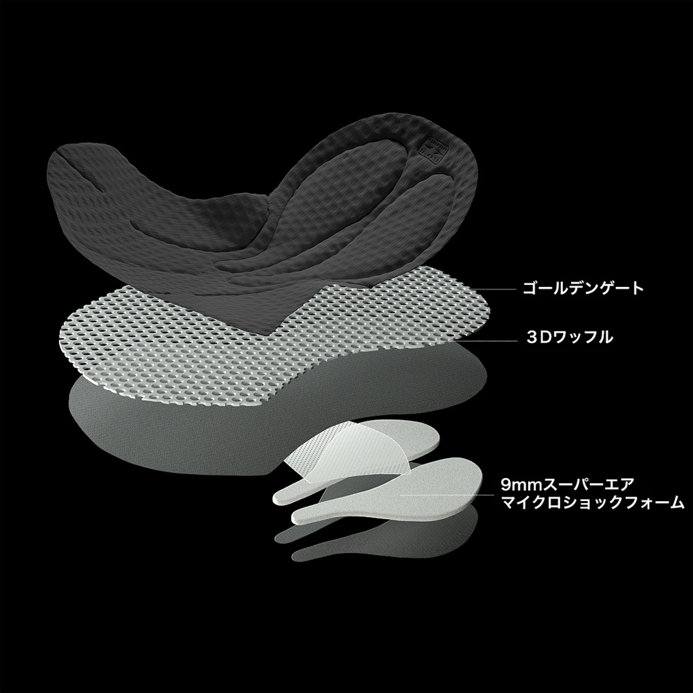 ASSOSインサートの特徴であるゴールデンゲートや3Dワッフルなどのテクノロジーを搭載し快適性も犠牲にせずライドに集中することが可能です。