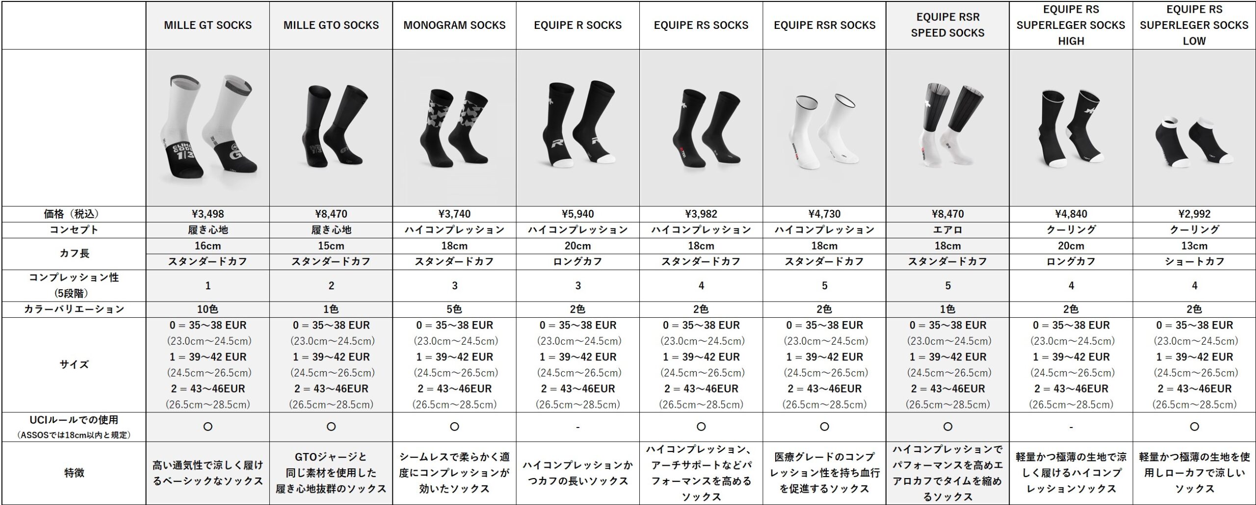 ASSOSサマーソックス比較表