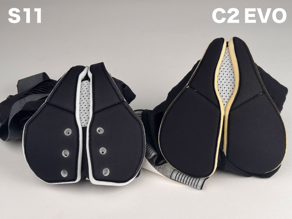 パッドもC2 EVOから進化しました。S11インサートはC2EVOと同じ13mmのダブルレイヤーインサートですが、形状が見直されています。