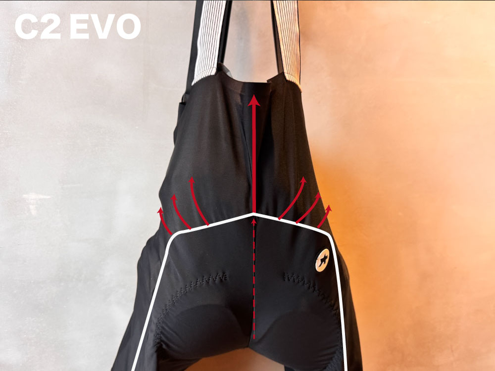 C2 EVOでは生地の力で中央から引き上げる構造でしたが、