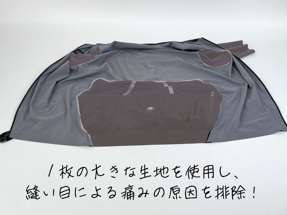 ASSOSのジャージを初めて着たとき、誰もが驚くのがその「薄さ」と「しっとり感」。